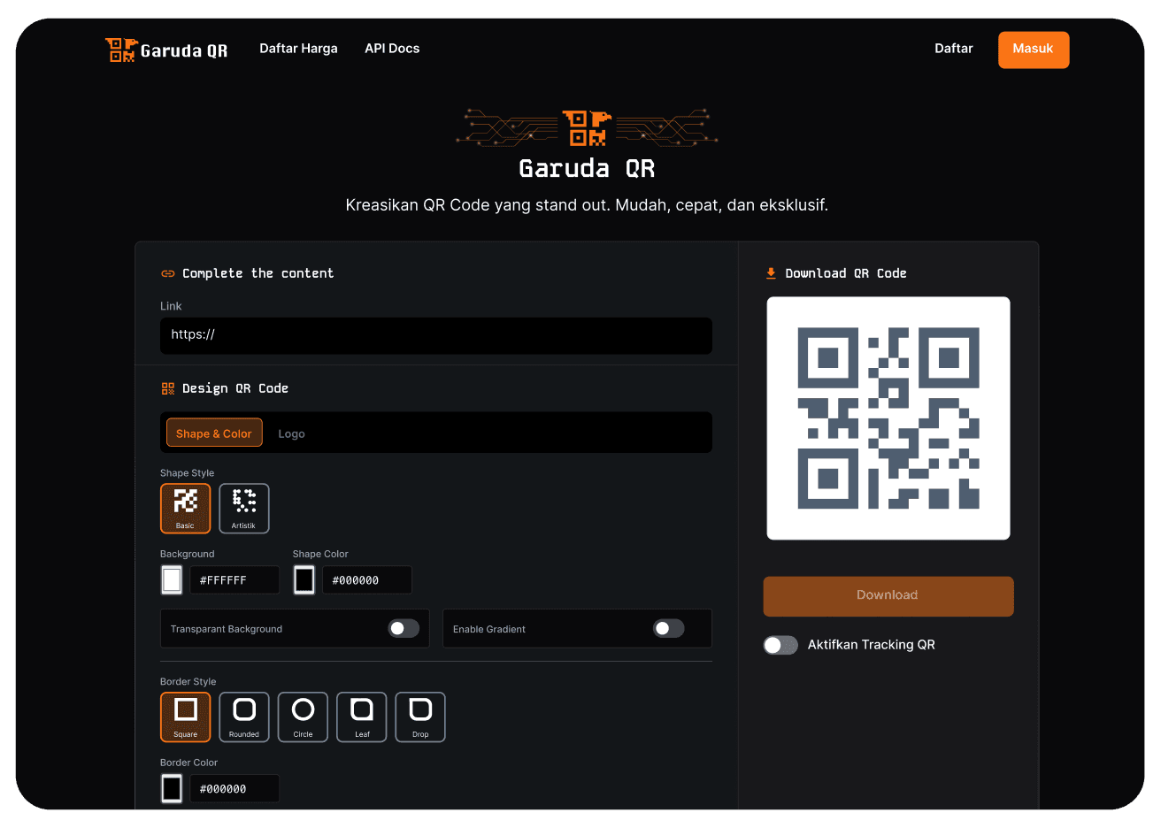 Fully customize your QR codes. Adjust colors, shapes, and tracking, or add your brand logo with ease. garudaqr.com